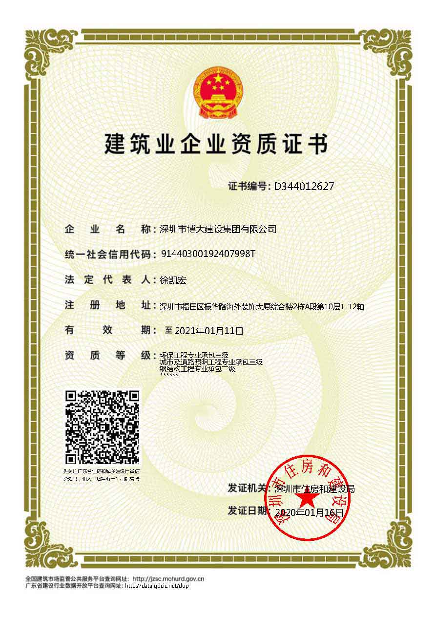 博大建設(shè)集團(tuán)作為行業(yè)最具發(fā)展活力的領(lǐng)軍企業(yè),近年來(lái)發(fā)展速度迅猛,2019年繼續(xù)保持穩(wěn)步增長(zhǎng),業(yè)績(jī)過(guò)百億。在各級(jí)領(lǐng)導(dǎo)的關(guān)懷和全體家人的共同努力下,集團(tuán)資質(zhì)建設(shè)取得新的進(jìn)展,榮獲6項(xiàng)建筑資質(zhì),具體如下: