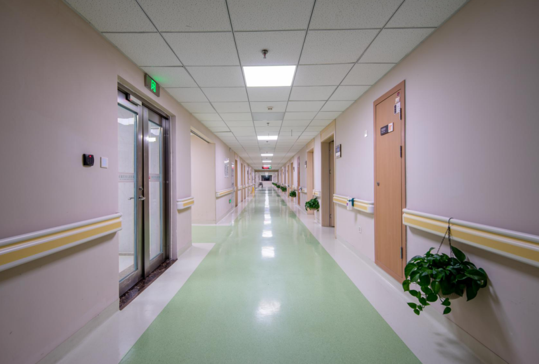 住院樓走廊采用礦棉吸音板吊頂,防火吸音性能好,同時(shí),該產(chǎn)品具有不燃性能,提高了醫(yī)院的防火安全性。地面采用PVC地板膠,防滑耐磨、吸音減震,是建設(shè)現(xiàn)代化醫(yī)院的環(huán)保用材。