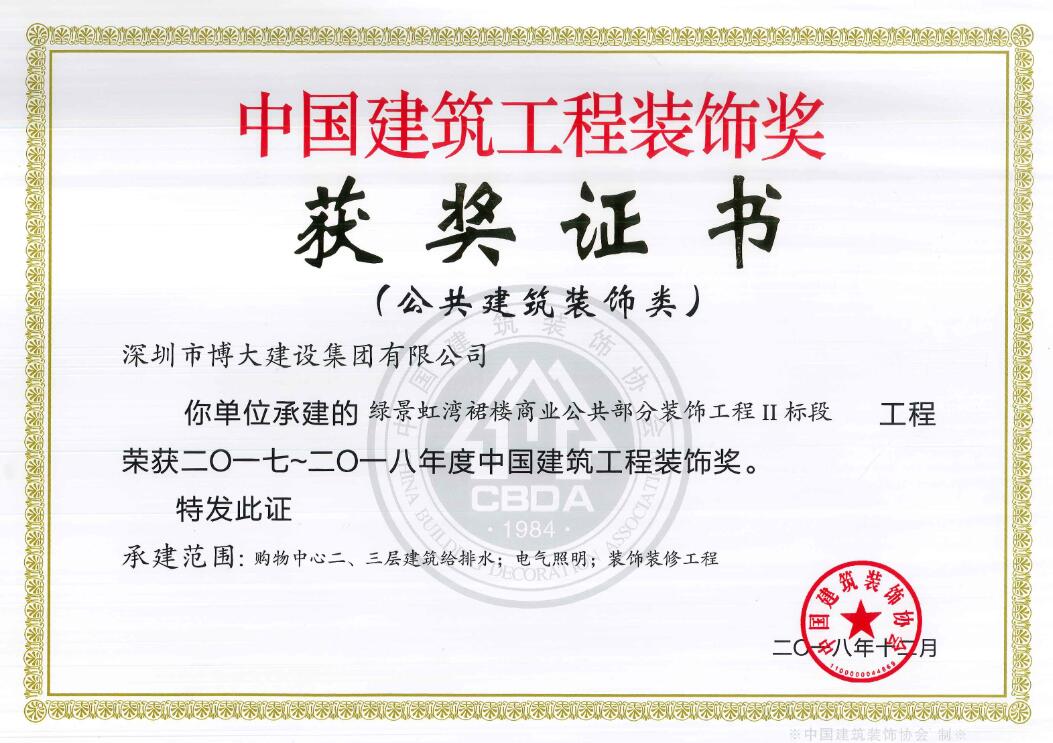 卓越品質鑄經(jīng)典工程 博大又獲5項中國建筑工程裝飾獎