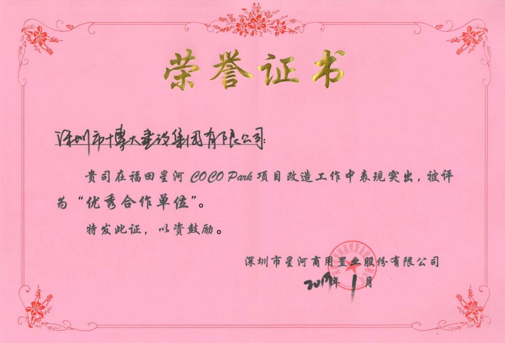 裝飾與幕墻平分秋色,博大建設(shè)集團(tuán)憑借過(guò)硬的工程質(zhì)量、嚴(yán)格的工期保障、全心全意的服務(wù),與招商蛇口建立了長(zhǎng)期合作關(guān)系,裝飾類(lèi)和幕墻類(lèi)同時(shí)榮獲招商蛇口“2018年度優(yōu)秀新供應(yīng)商獎(jiǎng)”。