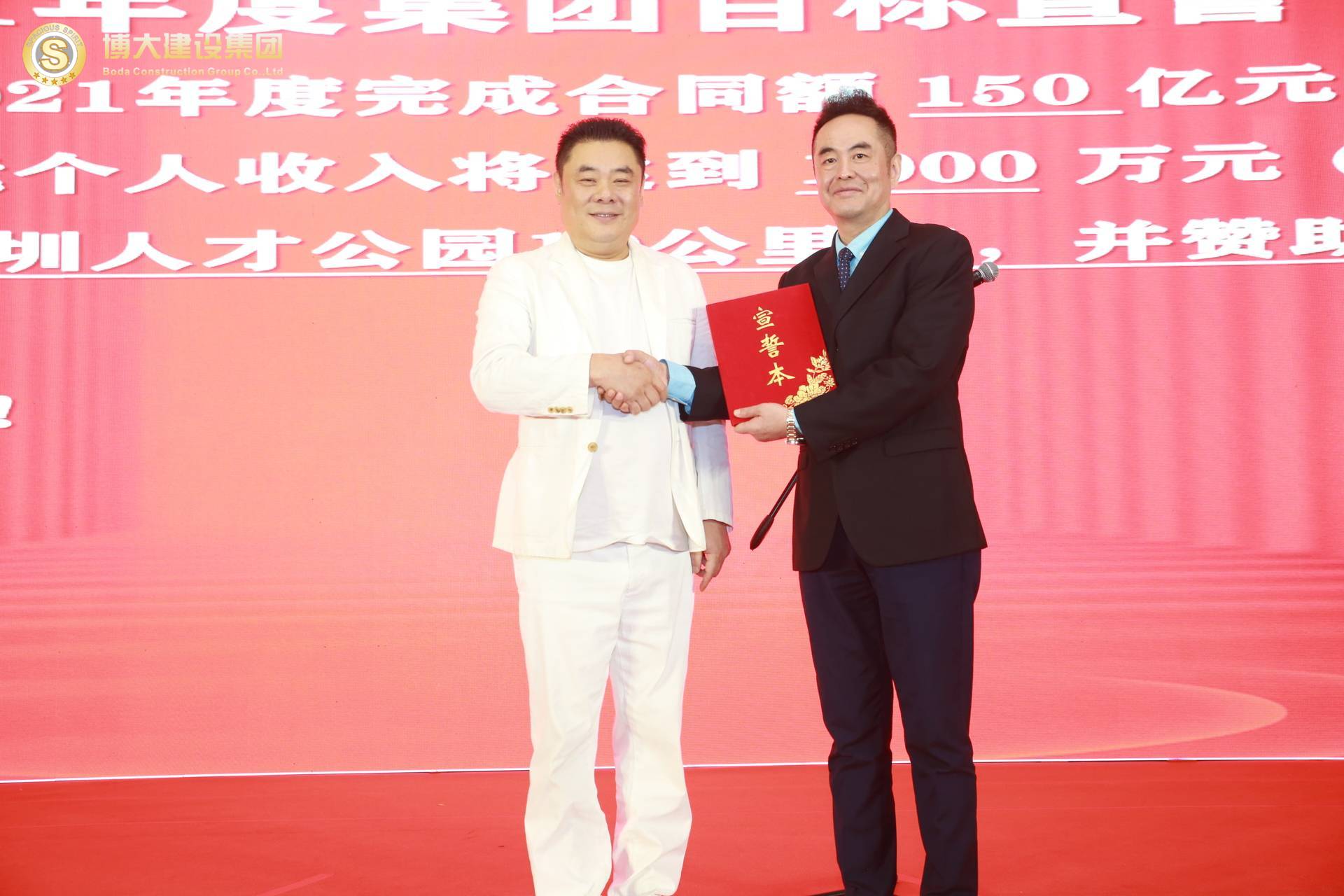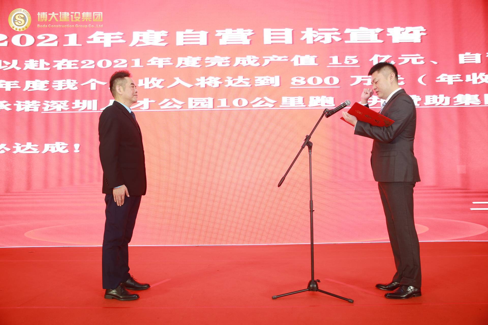 各戰(zhàn)區(qū)、中心、工廠負(fù)責(zé)人逐一上臺(tái),在全體合伙人的見證下對2021年的部門目標(biāo)和個(gè)人收入目標(biāo)莊嚴(yán)宣誓,洪董代表集團(tuán)對股東宣誓!