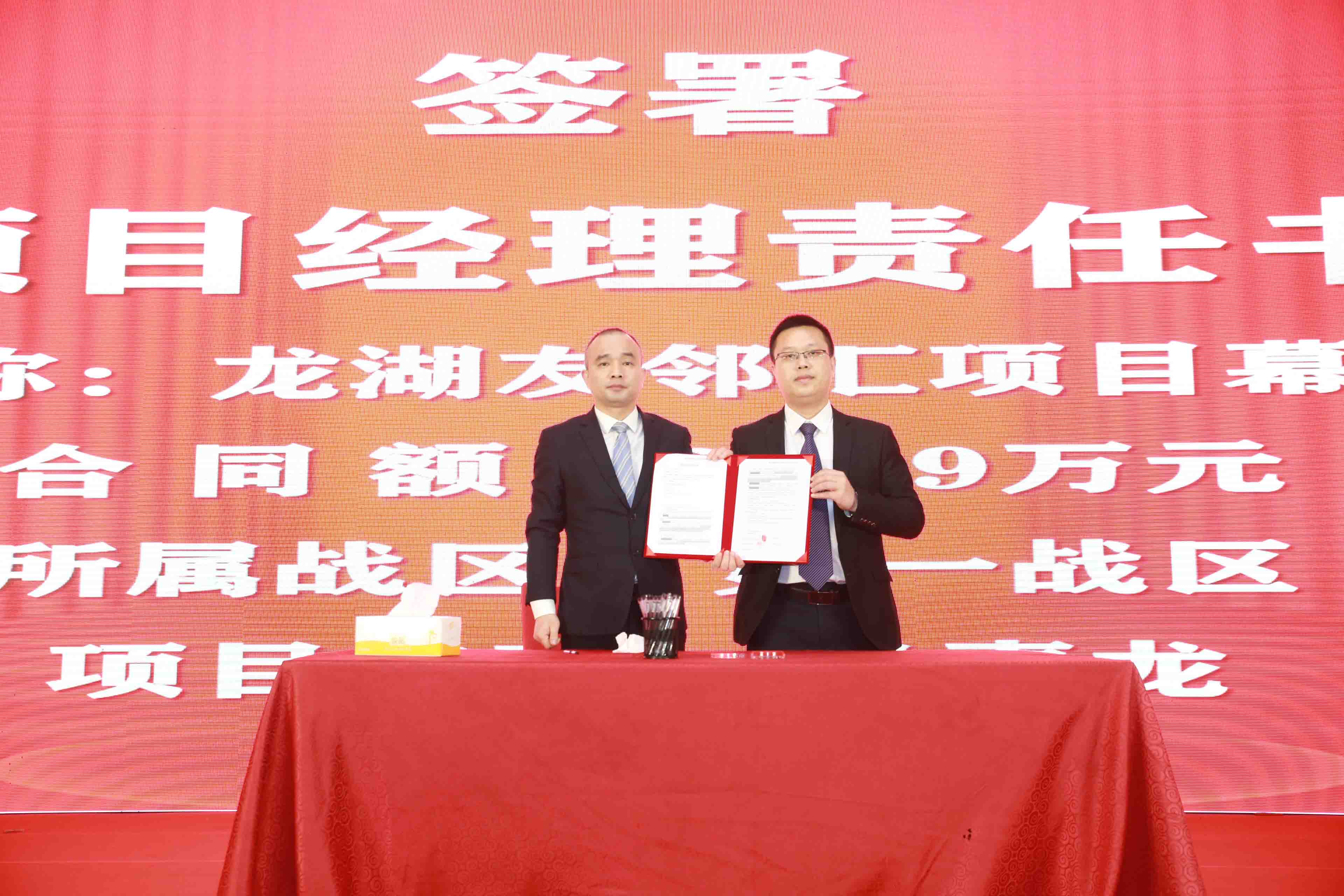 百舸爭流千帆競,莊嚴(yán)宣誓奮者先。2021年項(xiàng)目經(jīng)理簽約儀式、目標(biāo)宣誓大會(huì)現(xiàn)場莊嚴(yán)神圣,20位項(xiàng)目負(fù)責(zé)人作為集團(tuán)新開工項(xiàng)目代表與工程管理中心總經(jīng)理何學(xué)軍、副總經(jīng)理徐朝華簽訂《項(xiàng)目經(jīng)理責(zé)任書》,強(qiáng)化履約主體責(zé)任。