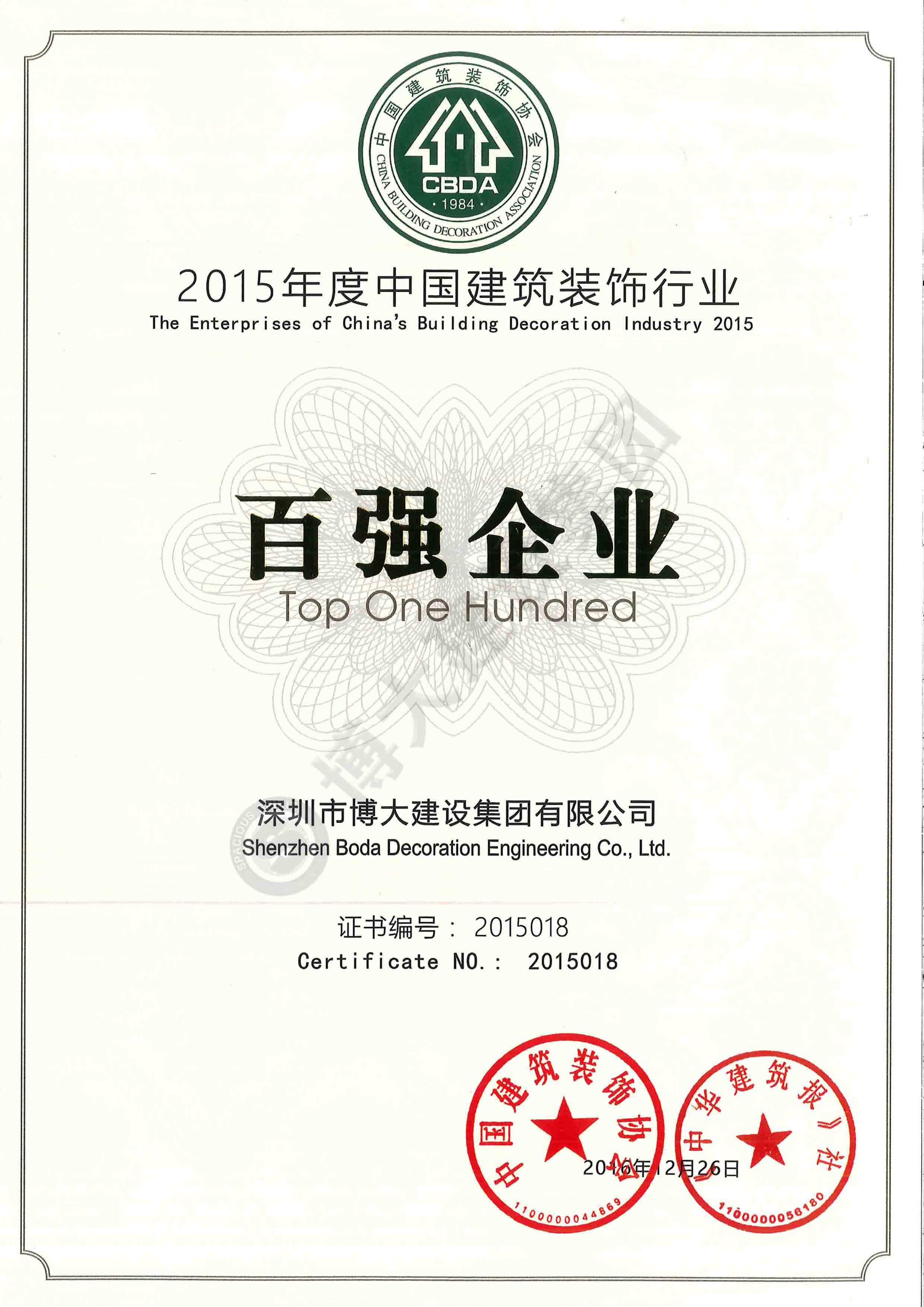 2015中國建筑裝飾行業(yè)百強(qiáng)企業(yè)