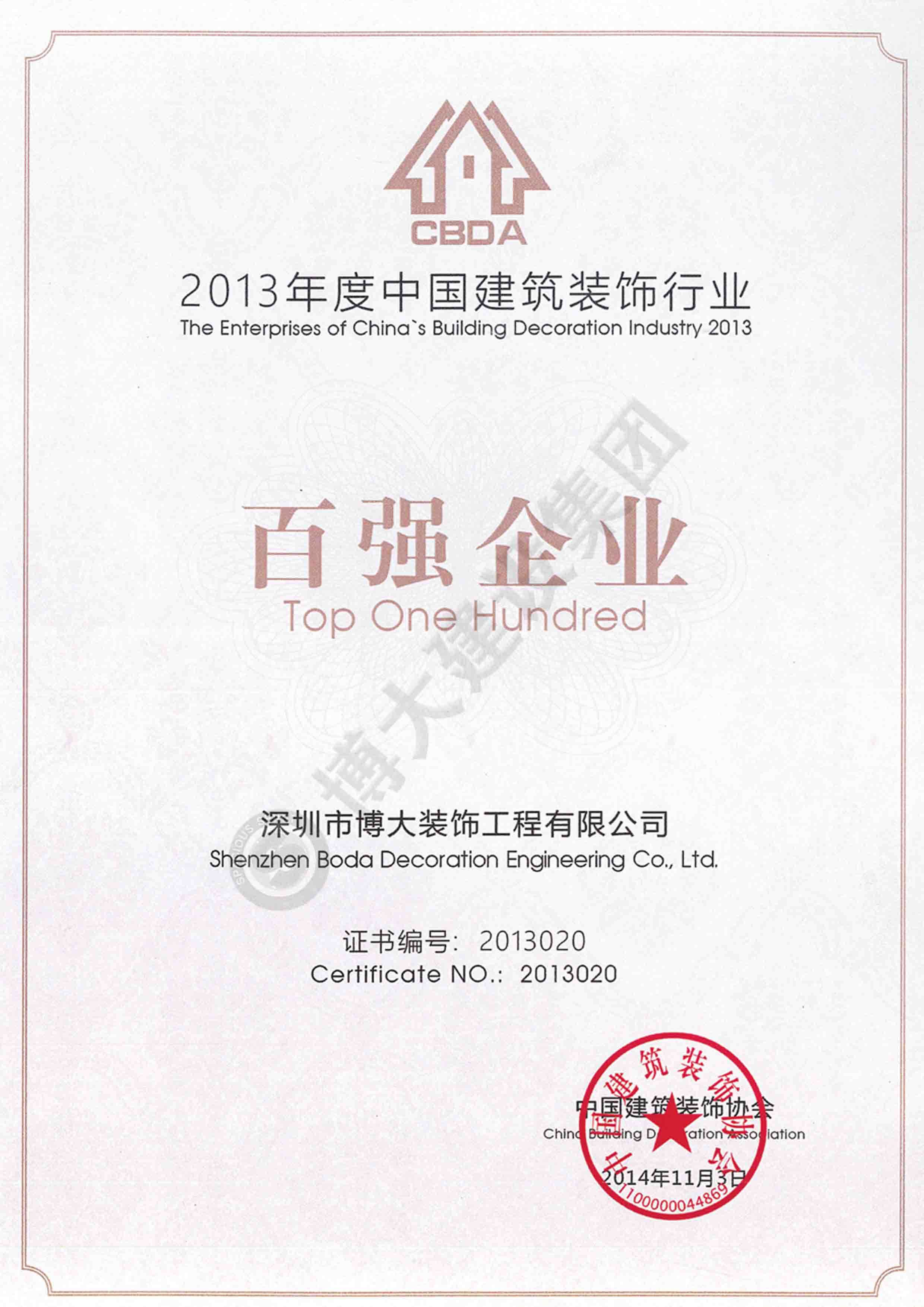 2013中國建筑裝飾行業(yè)百強(qiáng)企業(yè)