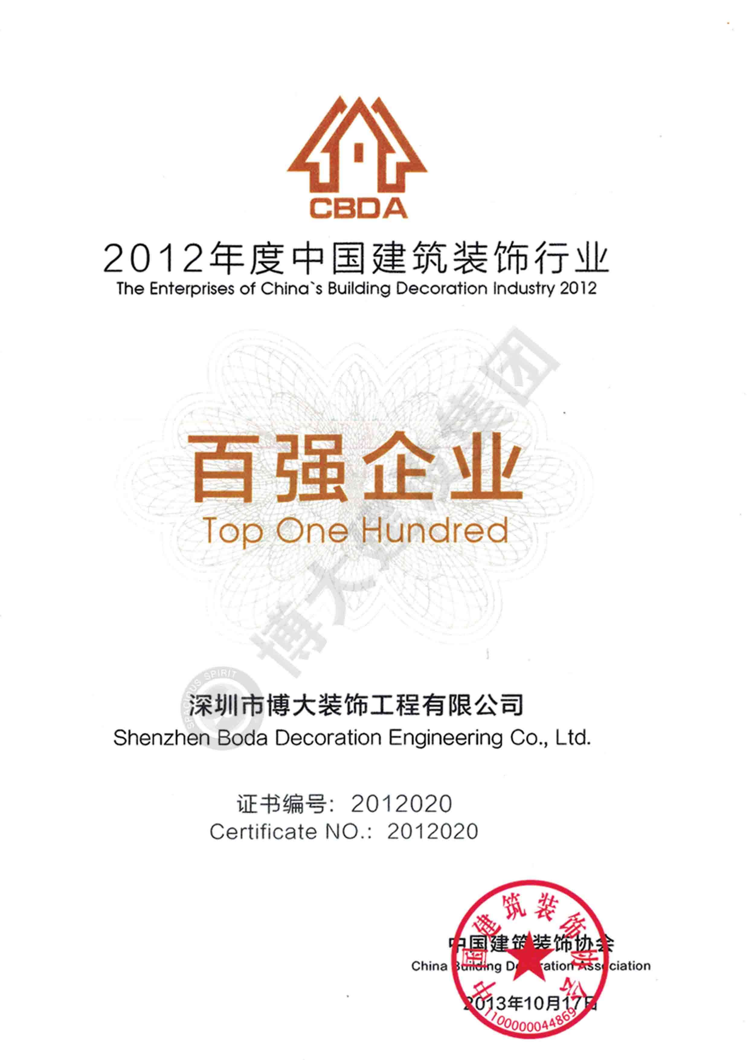 2012中國建筑裝飾行業(yè)百強(qiáng)企業(yè)