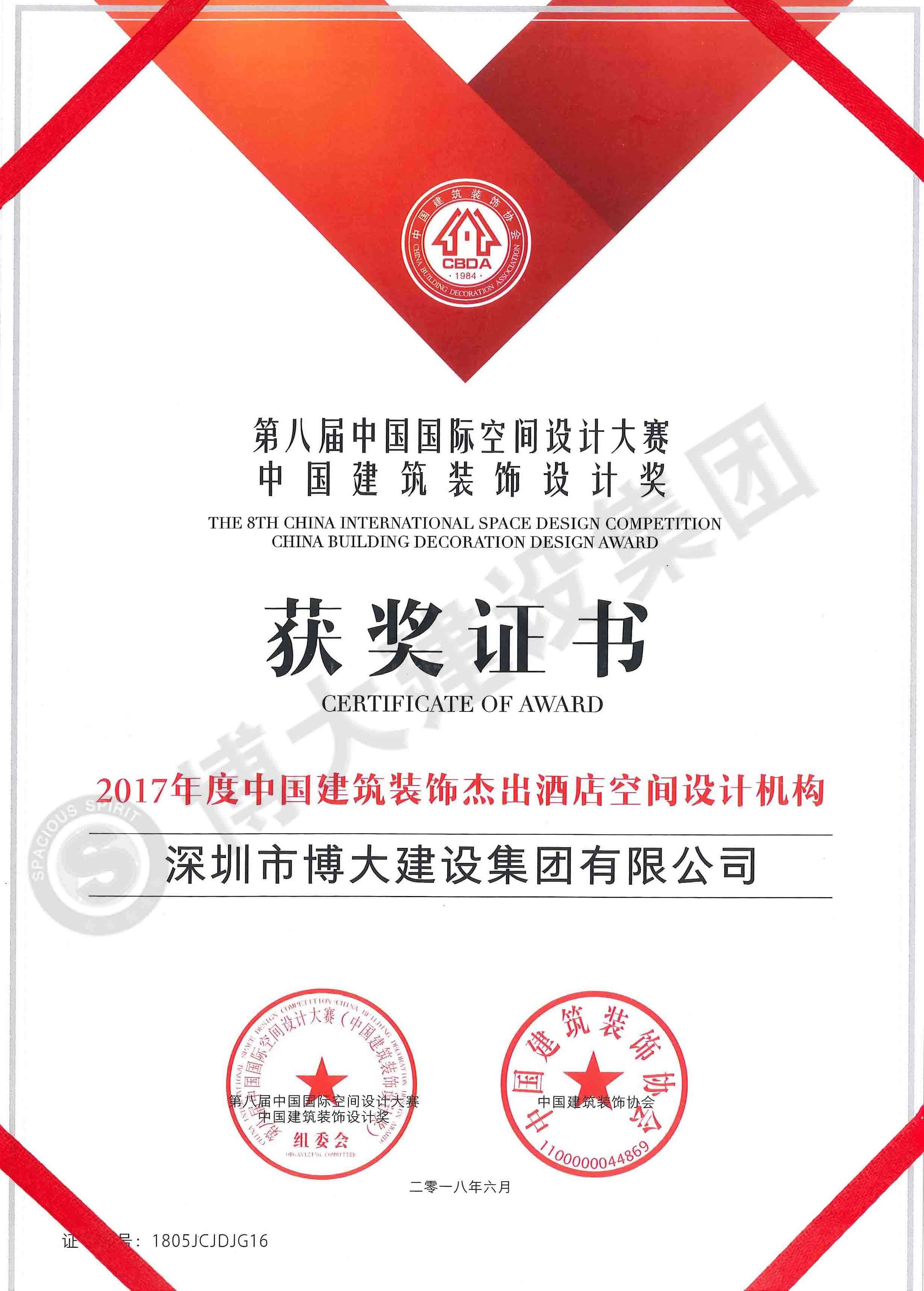 2017年度中國建筑裝飾杰出酒店空間設(shè)計(jì)獎(jiǎng)