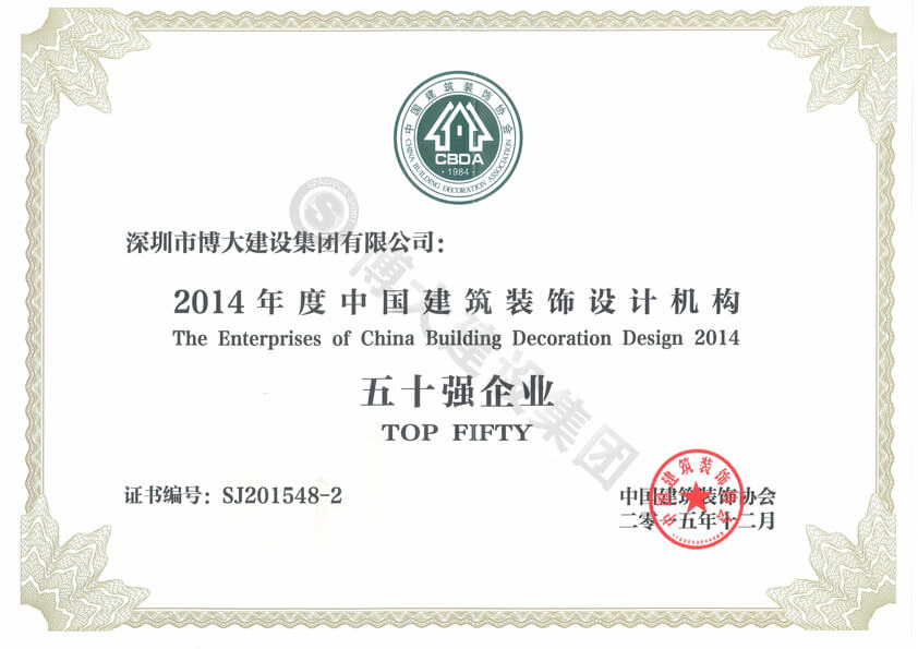 2014年度中國建筑裝飾設(shè)計機構(gòu)50強企業(yè)