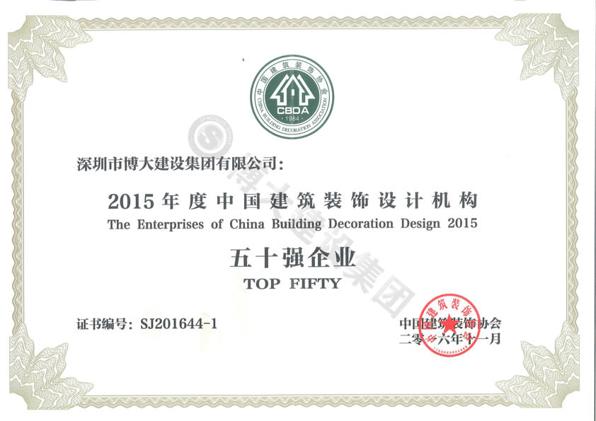 2015年度中國建筑裝飾設(shè)計機構(gòu)50強企業(yè)