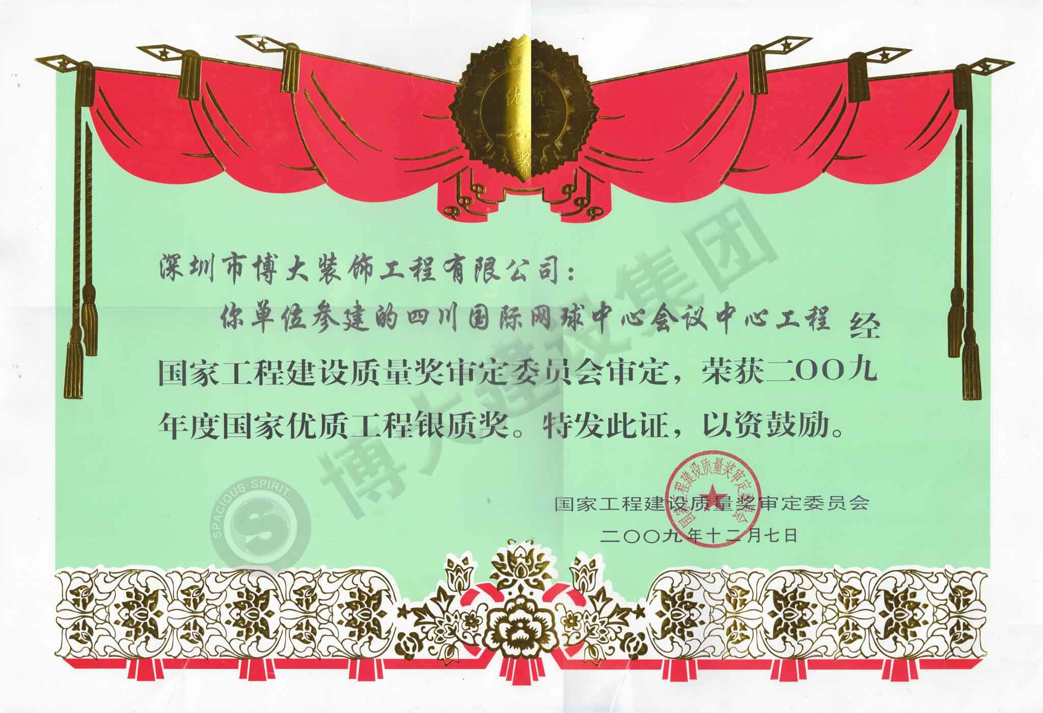 國家年度優(yōu)質(zhì)工程銀質(zhì)獎(四川國際網(wǎng)球中心會議中心工程)