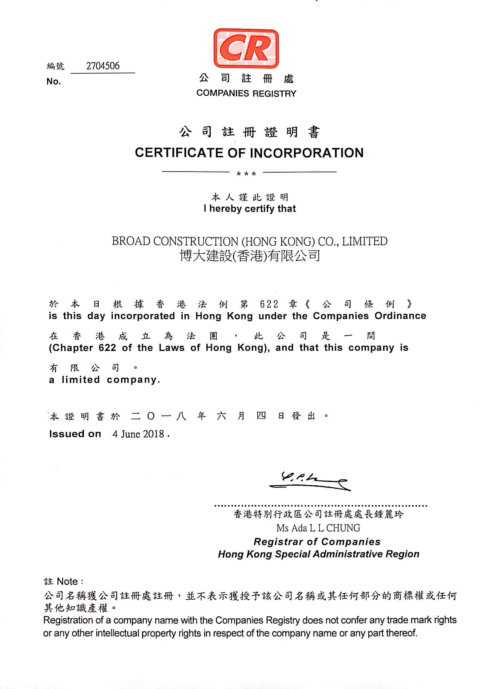 博大建設(shè)(香港)有限公司 成立完成粵港澳大灣區(qū)戰(zhàn)略布局