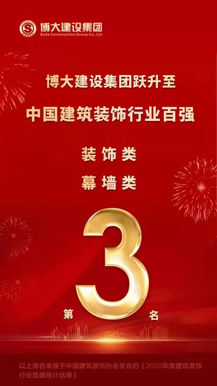 全國第三!博大建設(shè)集團(tuán)全國裝飾行業(yè)百強(qiáng)排名再次躍升!