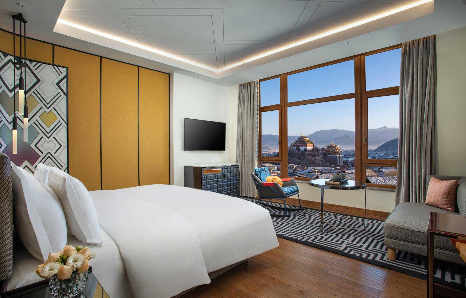 房間設(shè)計(jì)從藏地文化中汲取靈感,寫(xiě)意回溯香格里拉鄰間故事,打造兼具民族風(fēng)韻和現(xiàn)代舒適的下榻空間,點(diǎn)綴精挑細(xì)選的工藝品及特色壁畫(huà),房間的角落和細(xì)節(jié)處處可見(jiàn)充滿本地風(fēng)情的鄰間文化。開(kāi)窗見(jiàn)景,入室賞藝,高品質(zhì)客房設(shè)施營(yíng)造了引人入勝的旅居氛圍。