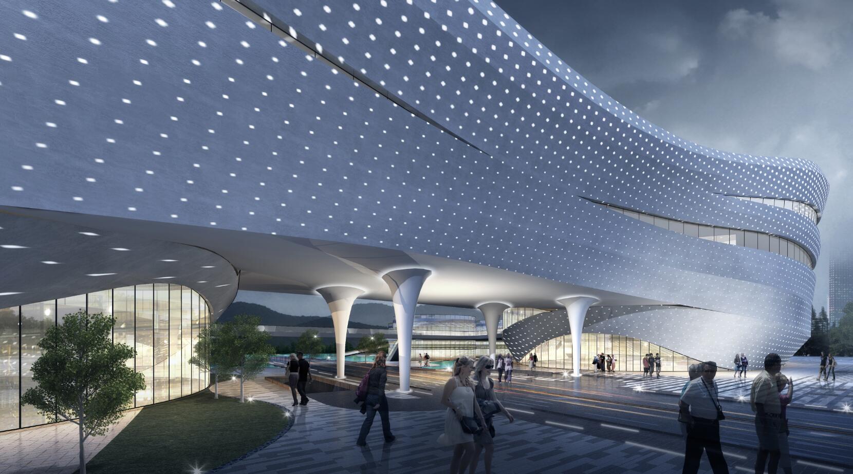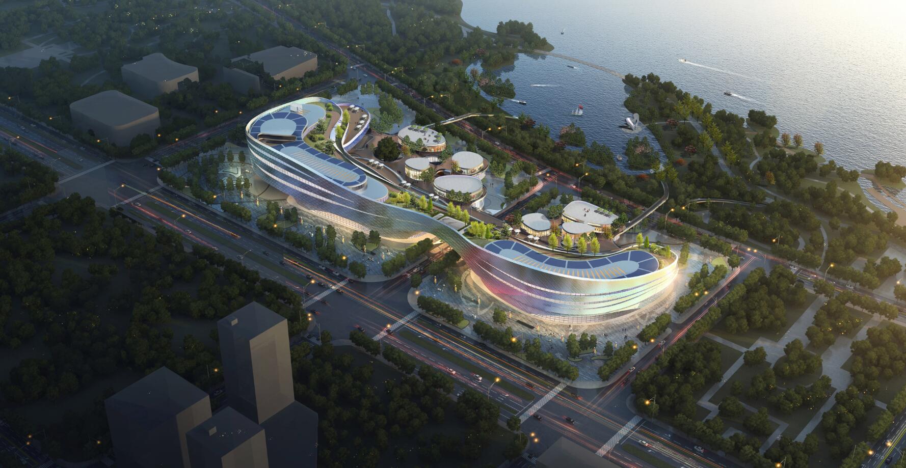 九江市鄱陽(yáng)湖生態(tài)科技城科創(chuàng)中心幕墻工程位于江西省九江市廉溪區(qū)琴湖大道,幕墻面積約70000㎡,外立面為流線形開放式鋁板幕墻。