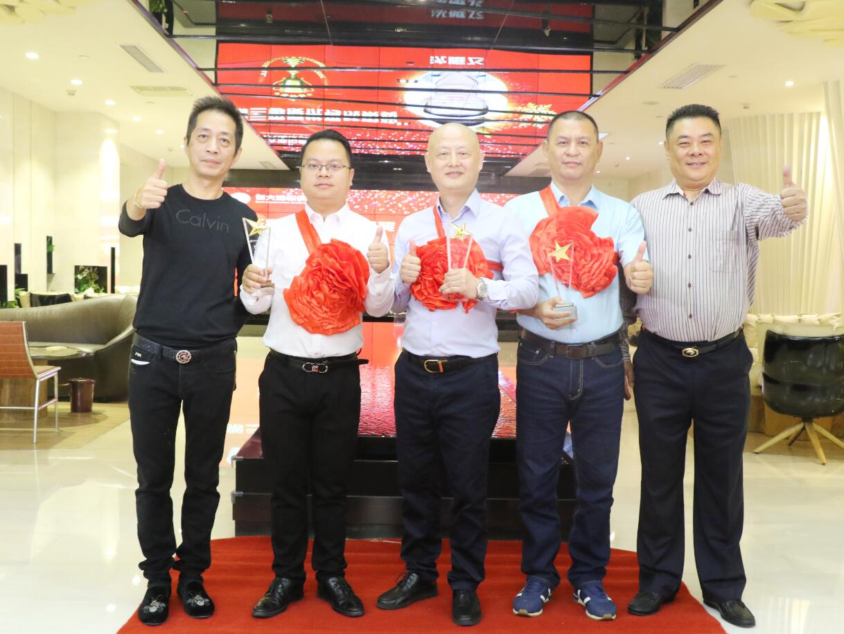 集團(tuán)副總裁、幕墻中心總經(jīng)理江東帶領(lǐng)團(tuán)隊(duì),在柳州會(huì)展中心二期幕墻工程中憑借精湛的施工、高效的服務(wù),贏得客戶的高度認(rèn)可,成功拓展柳州會(huì)展中心二期精裝修工程,被授予優(yōu)秀成果獎(jiǎng)。圖為黃河副董事長(zhǎng)與獲獎(jiǎng)?wù)吆嫌傲裟睢?/span>
