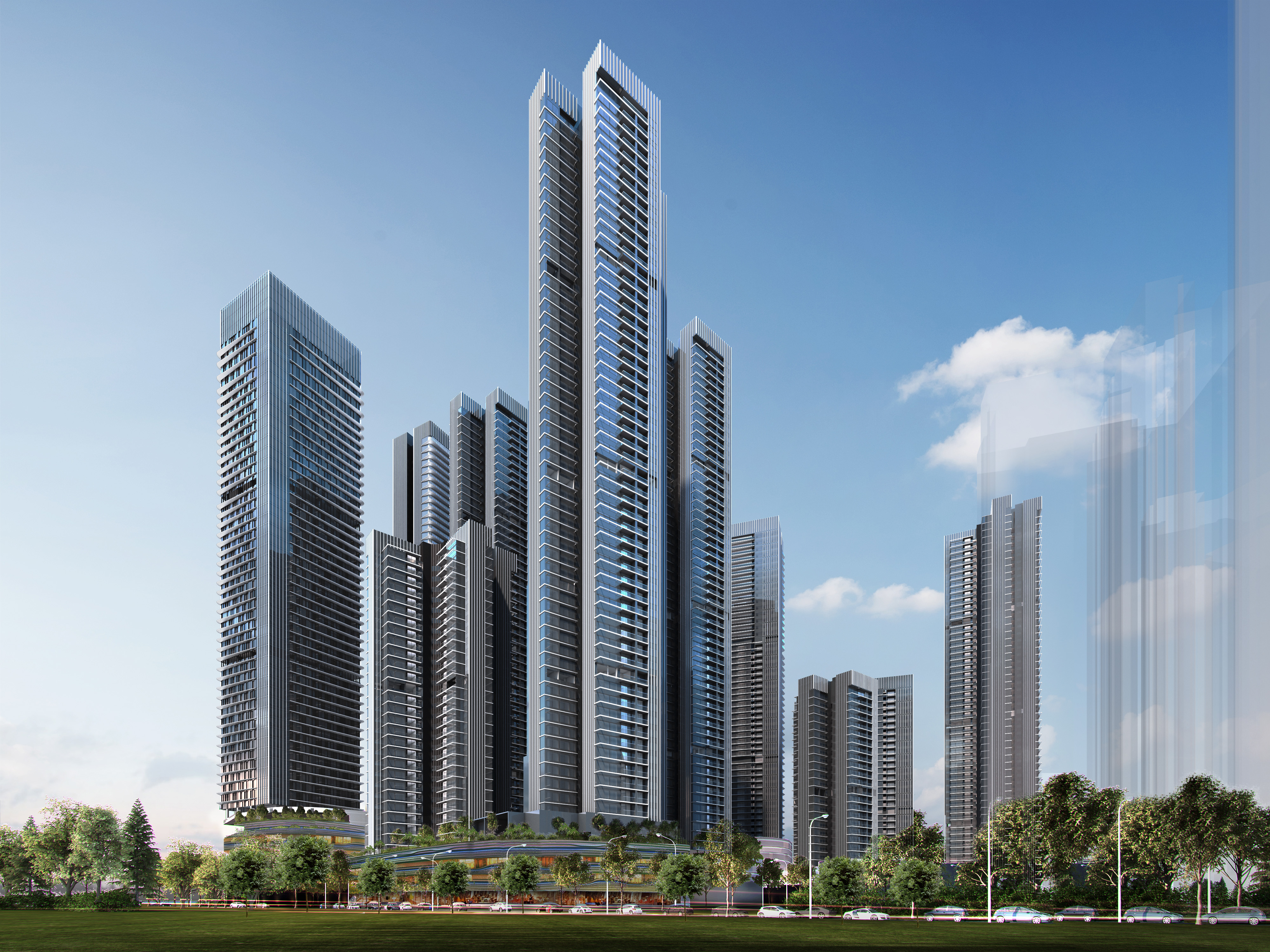 項(xiàng)目位于深圳市羅湖區(qū)愛國路與華麗路交匯處西南角,占地面積約6.4萬㎡,總建筑面積約69.2萬㎡。博大累計(jì)中標(biāo)了共計(jì)10棟超過200m的超高層幕墻,創(chuàng)造同一項(xiàng)目超高層幕墻數(shù)量的新紀(jì)錄。主要幕墻系統(tǒng)為框架式玻璃幕墻、金屬板幕墻、采光頂、玻璃欄桿及鋁合金格柵系統(tǒng)等。