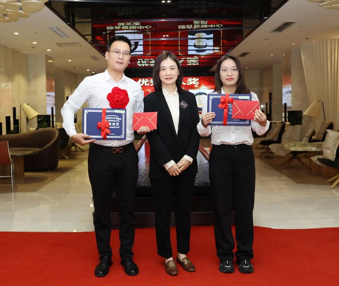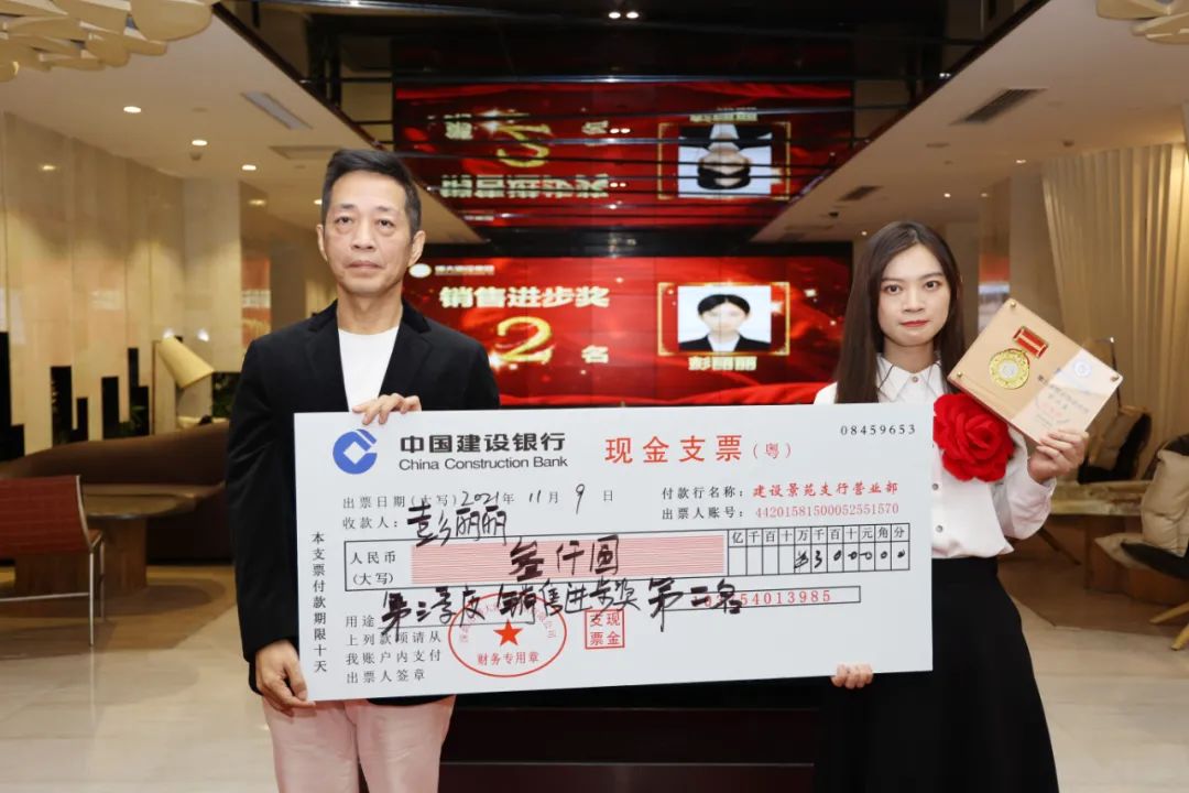 圖 | 集團(tuán)副董事長(zhǎng)李朕鴻為彭麗麗頒發(fā)第三季度銷(xiāo)售進(jìn)步獎(jiǎng)