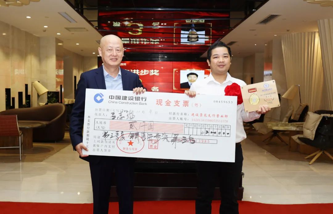 圖 | 集團(tuán)總裁黃河為勞務(wù)班組付光樂(lè)頒發(fā)最佳合作伙伴獎(jiǎng)