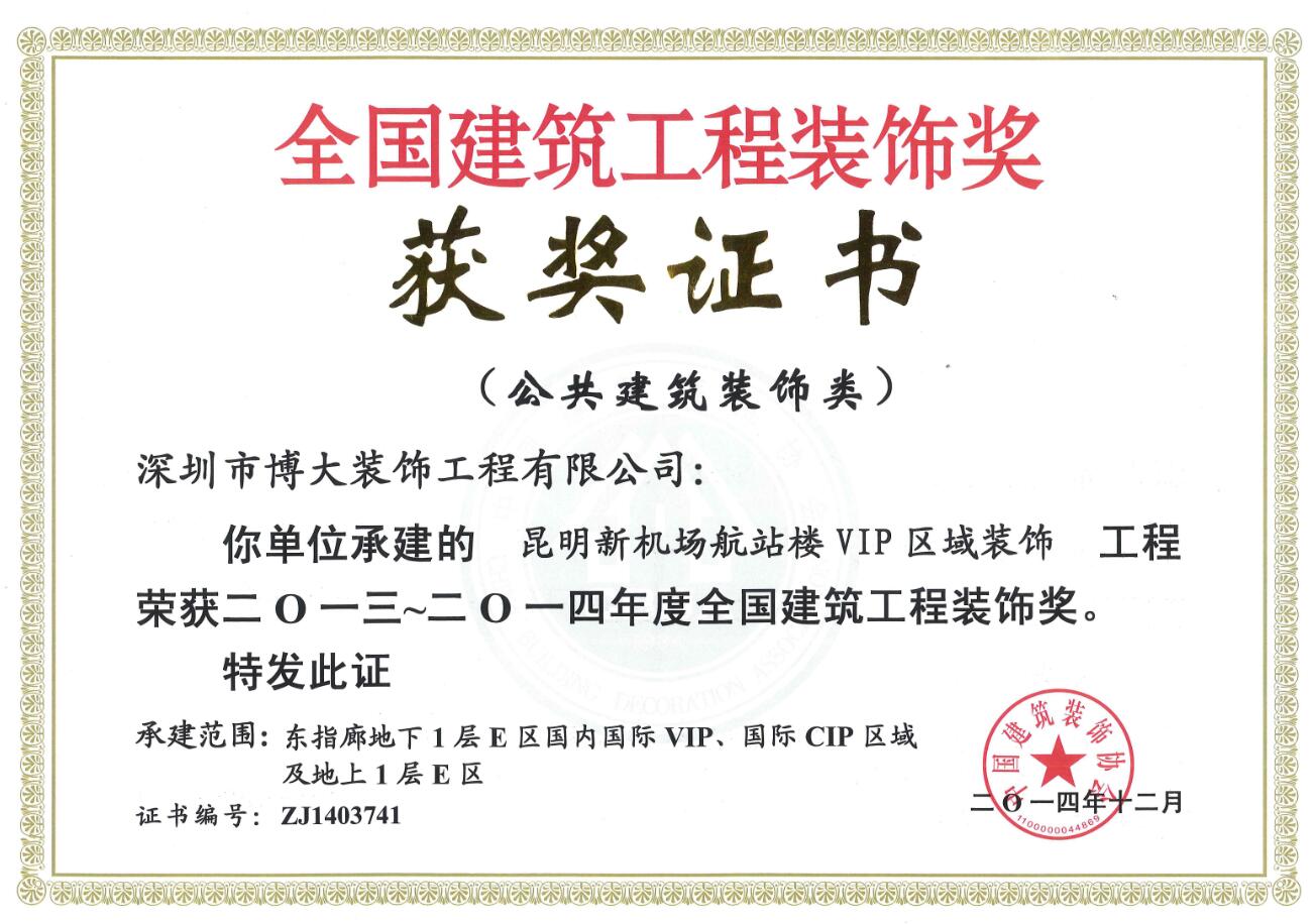 博大以精益求精的工匠精神成就大國品質(zhì),榮獲中國建筑裝飾最高獎(jiǎng)——魯班獎(jiǎng)、中國建筑裝飾工程獎(jiǎng),博大被云南省委、省政府授予“先進(jìn)集體嘉獎(jiǎng)”榮譽(yù)稱號。